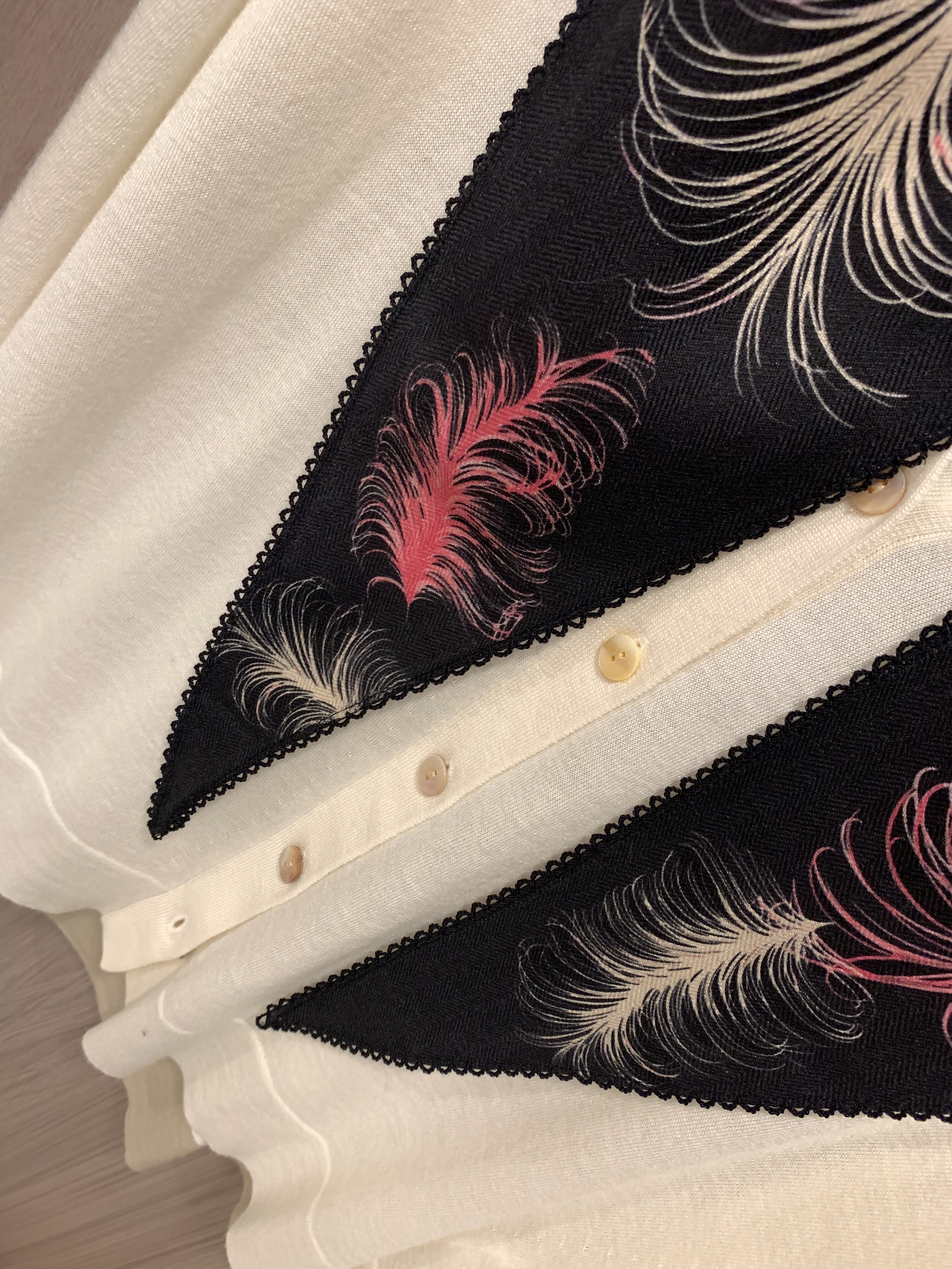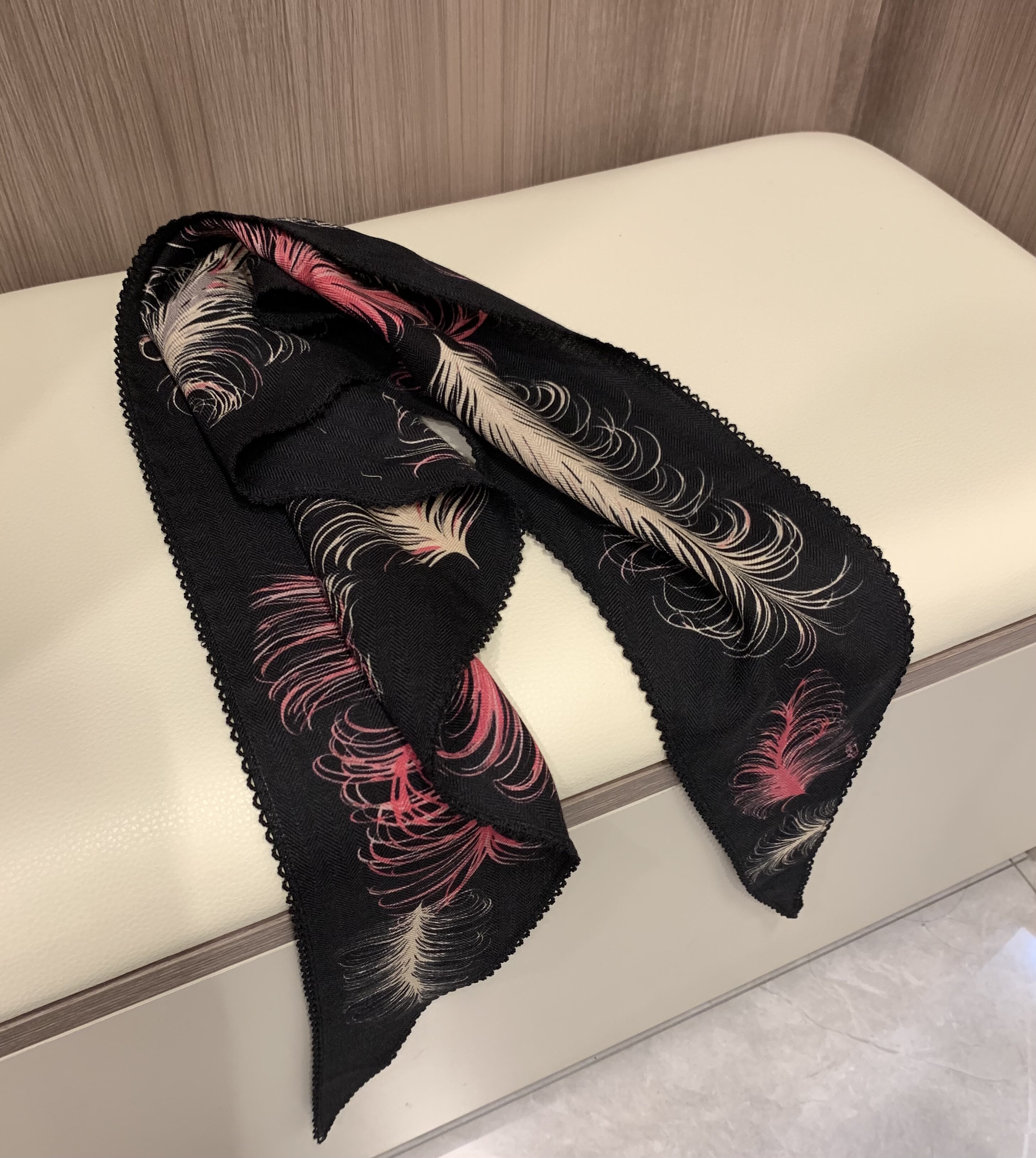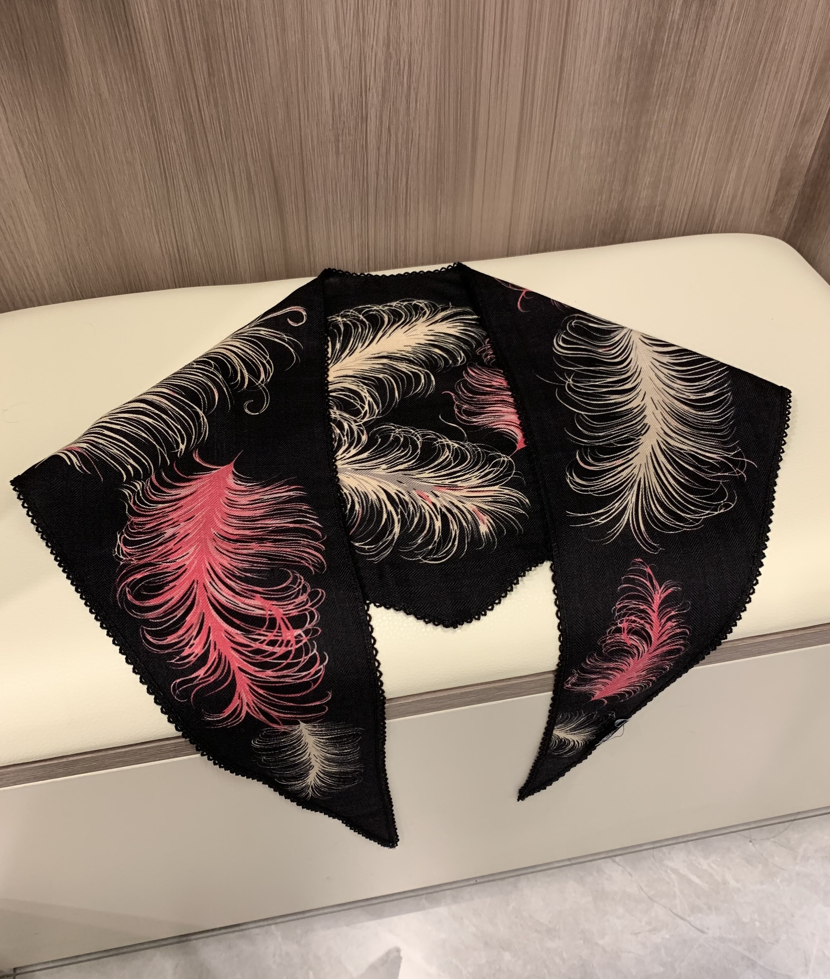 福利 羽毛三角巾 百搭时髦小围巾桑蚕丝绵羊毛小披肩女125×32CM