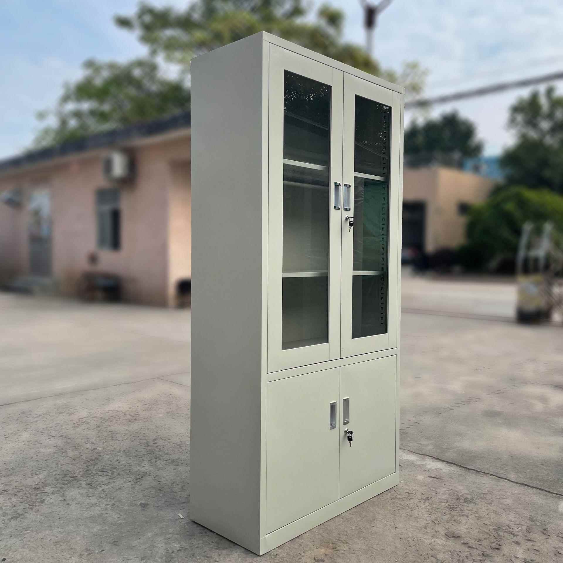 铁皮带抽屉文件柜玻璃开门办公柜透明资料档案柜家用书柜钢凭证柜