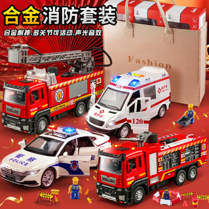 消防车玩具男孩礼盒套装合金小汽车模型警车救护车儿童3生日礼物6