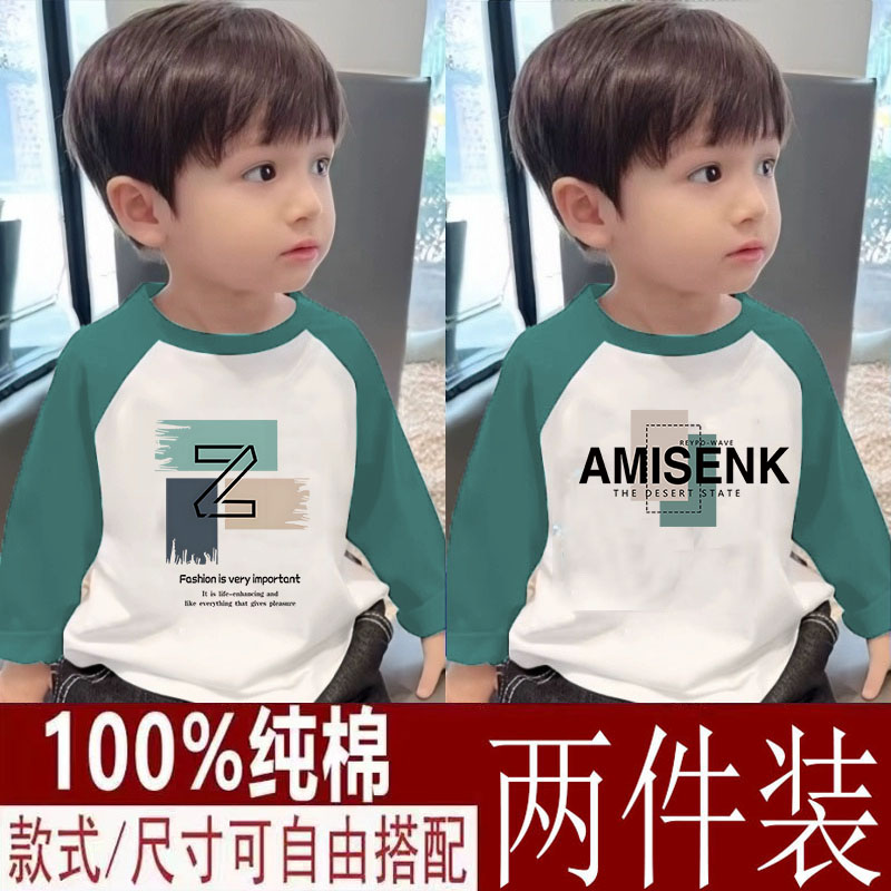 纯棉儿童拼接长袖t恤2025春秋装中小童装新款男童宝宝插肩打底衫