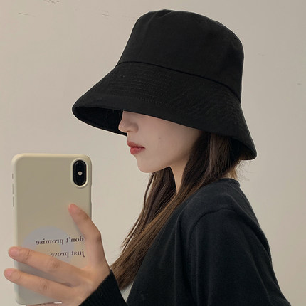 大帽檐渔夫帽女春夏季黑色大头围遮阳防晒盆帽韩版显脸小百搭帽子
