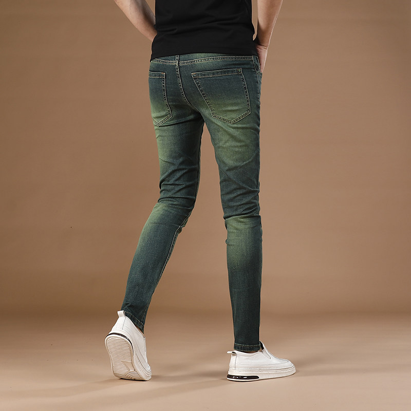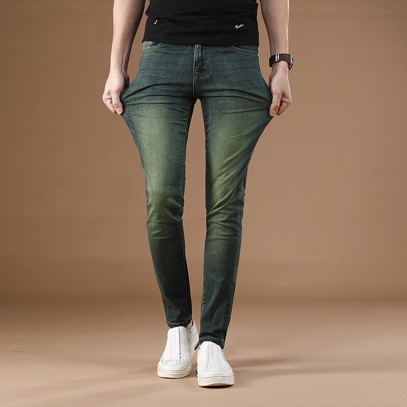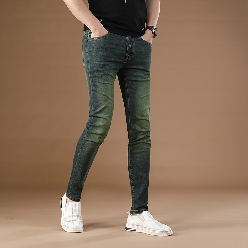 2025新款绿色裤子男夏季超薄款弹力牛仔裤男修身小脚裤男士长裤潮