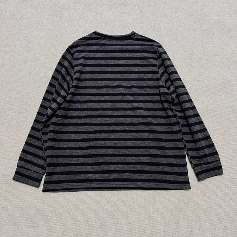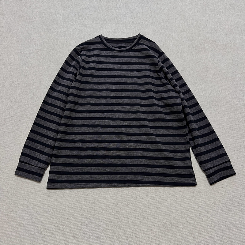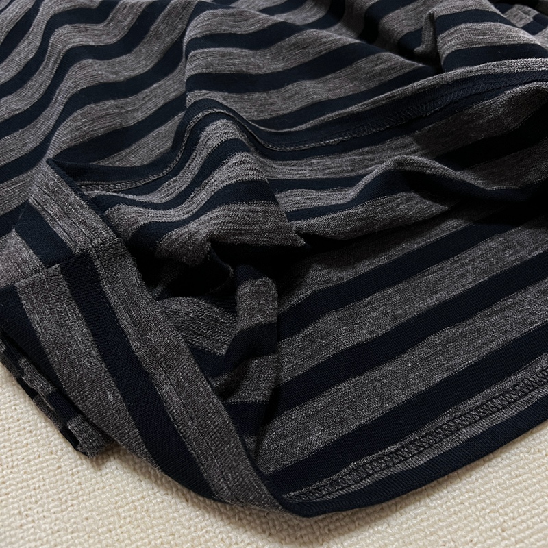 高级感撞色条纹圆领长袖~T恤女士宽松时髦简约百搭亚麻打底衫包邮