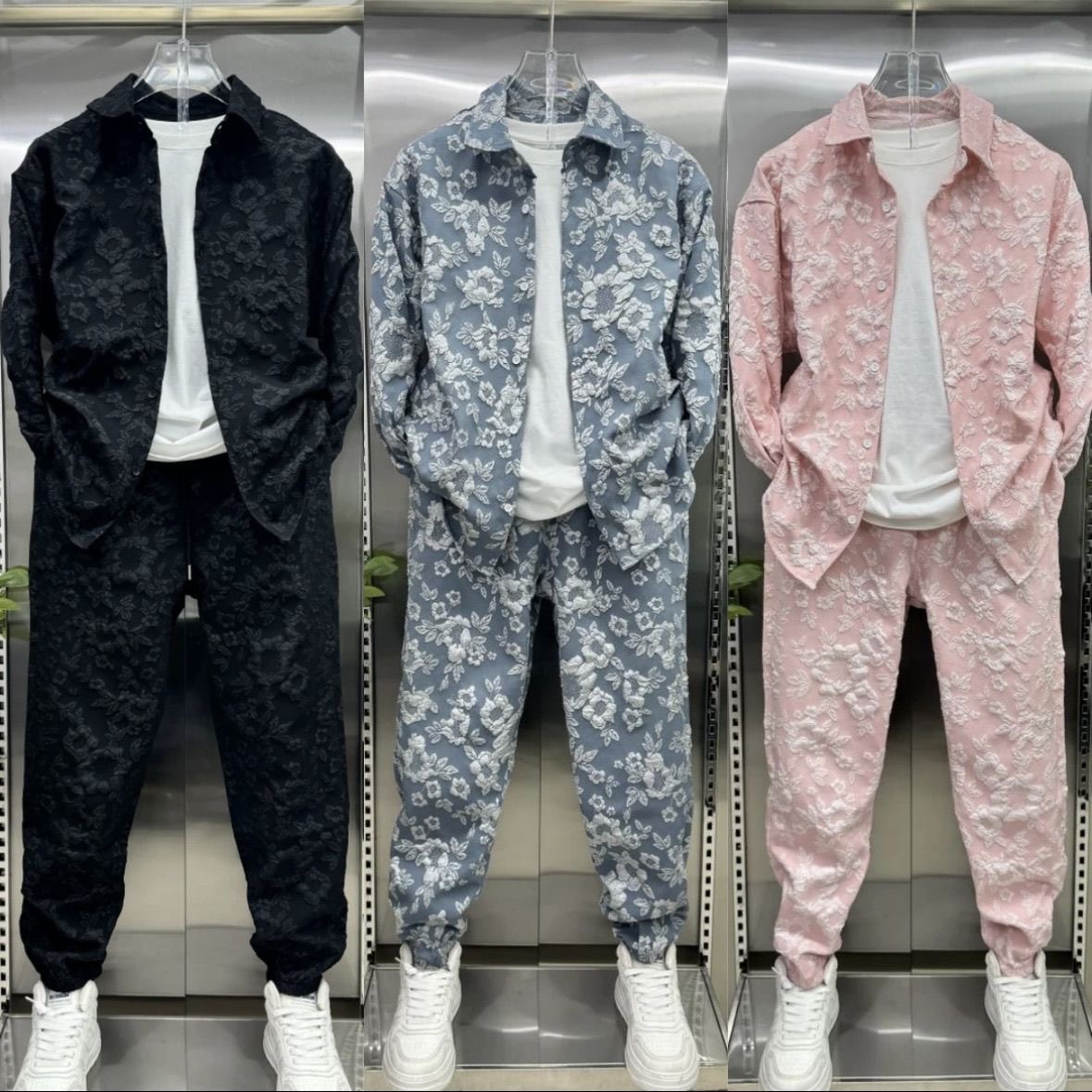 2025新款男士春秋季轻奢修身百搭长袖翻领衬衫爆款时尚潮流套装