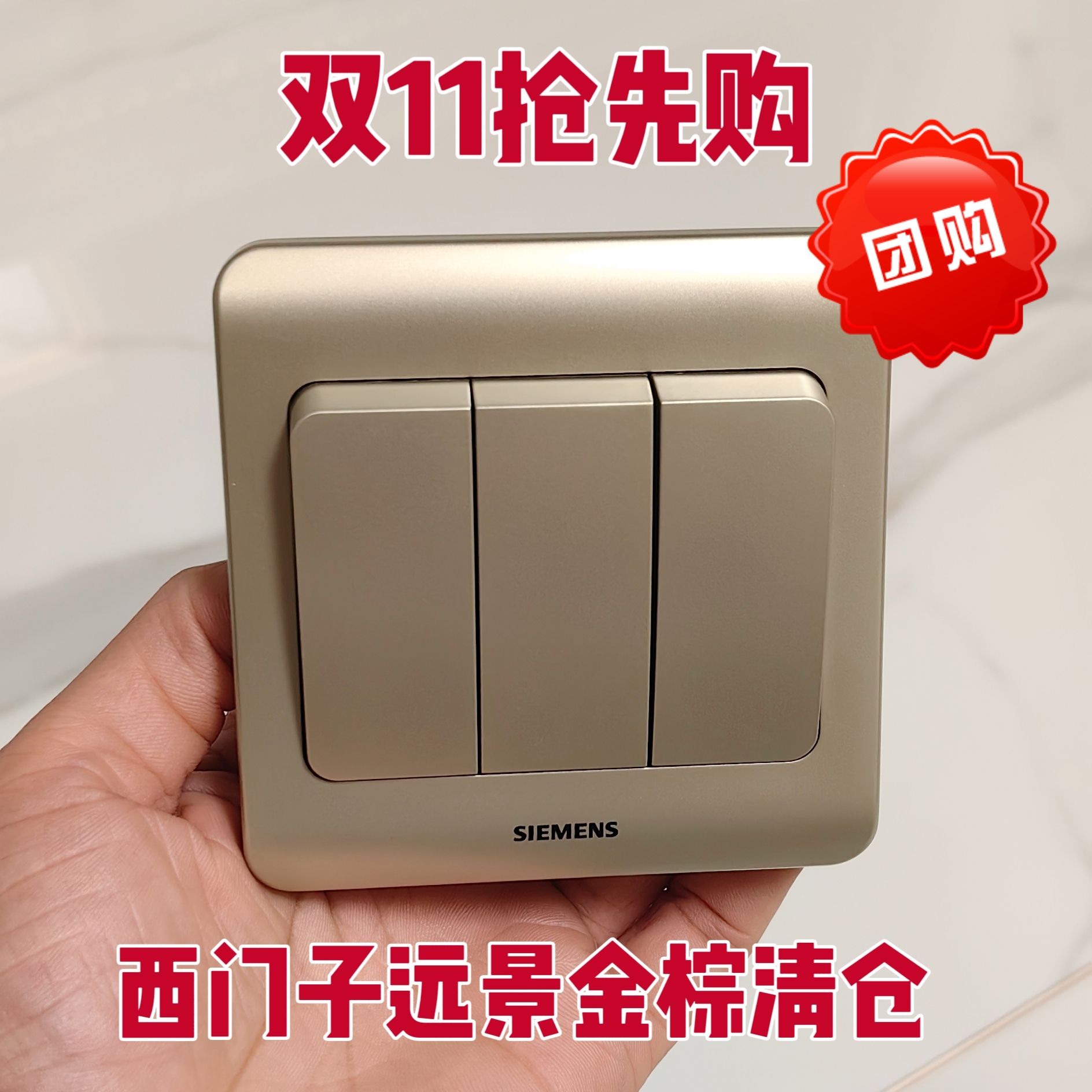 西门子开关插座 远景金棕五孔三孔16A二三单控二开电视电脑双控