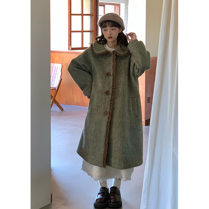 蛋包饭餐厅【秋木松林】娃娃领复古呢子大衣女冬季过膝毛呢外套