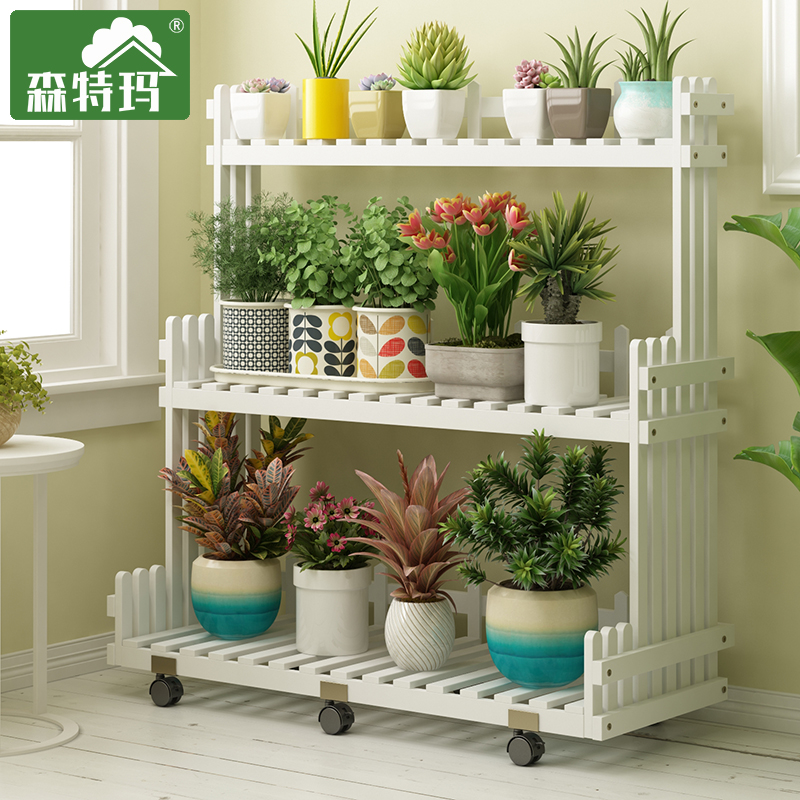 白色花架置物架多层室内外欧式花架子阳台客厅落地绿萝花盆架带轮