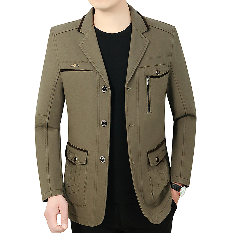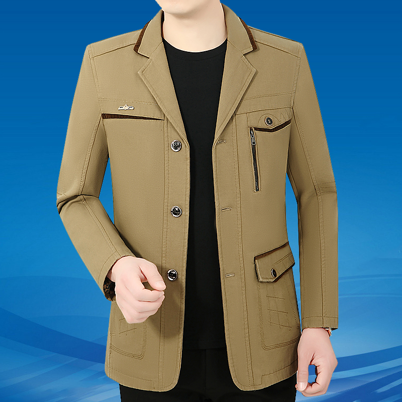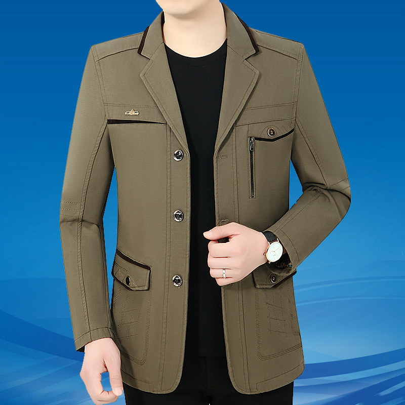 新款中年夹克男春秋款爸爸装休闲薄款纯棉外套中老年人爷爷西装领