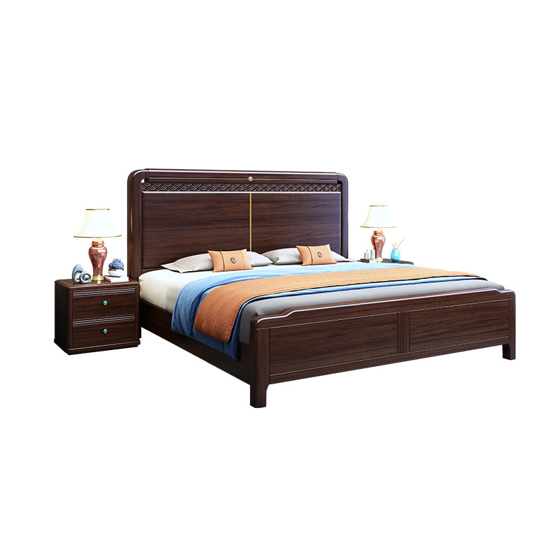 新中式双人乌金木实木床