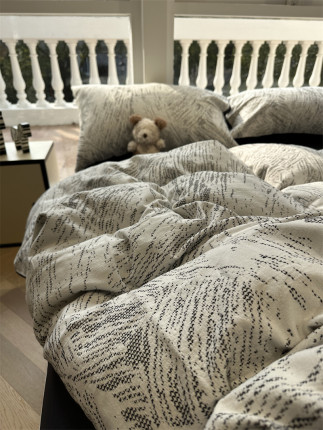 高级简约风色织水洗棉提花床上四件套1.5m1.8米公寓全棉被套床单