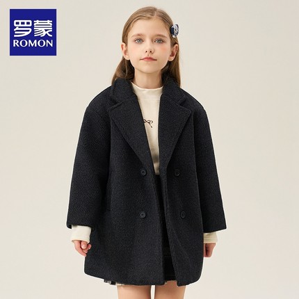 罗蒙女童双面羊毛大衣中长款西装领加厚外套2025秋冬全羊毛风衣潮