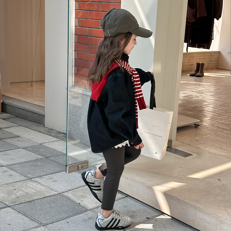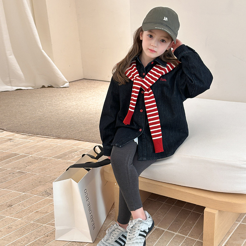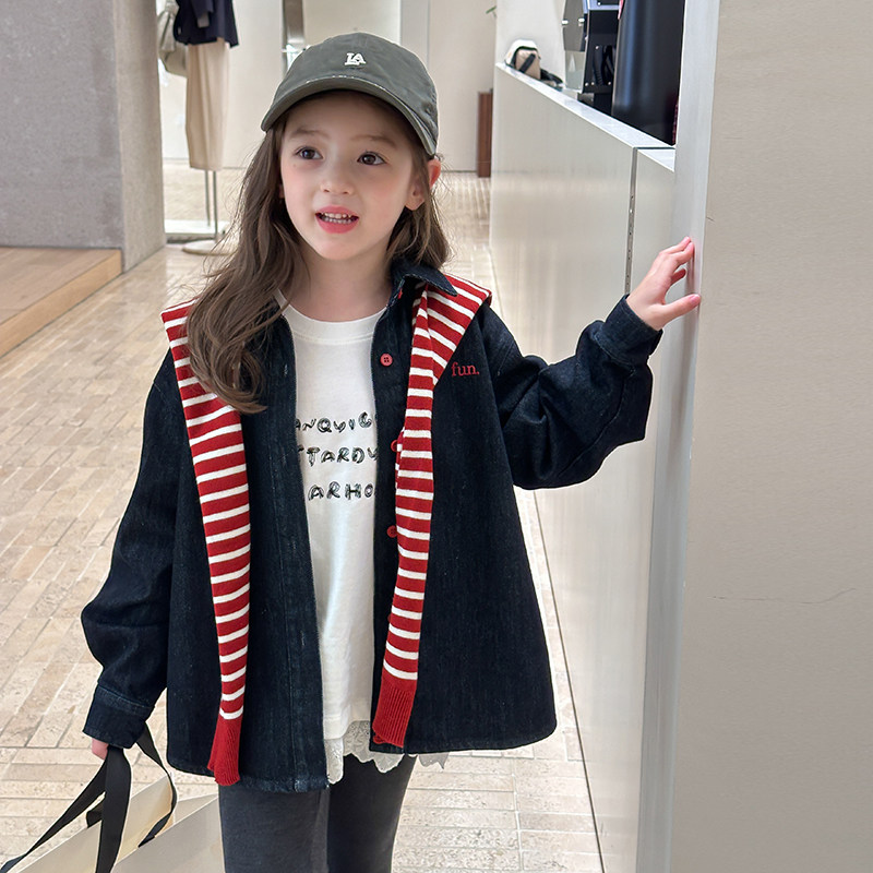 女童秋装韩版宽松字母刺绣牛仔外套儿童加厚保暖翻领衬衫女孩上衣