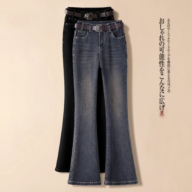 高腰修身显瘦九分牛仔微喇裤女2025春秋新品气质百搭复古喇叭长裤