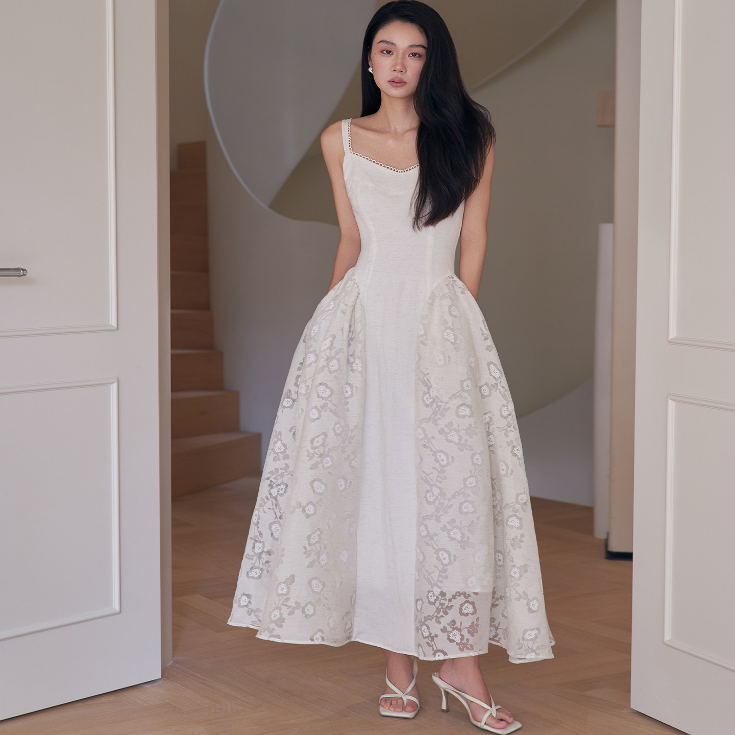 签儿2025年春秋白月光领证小白裙子复古小众荡领蕾丝长袖连衣裙女