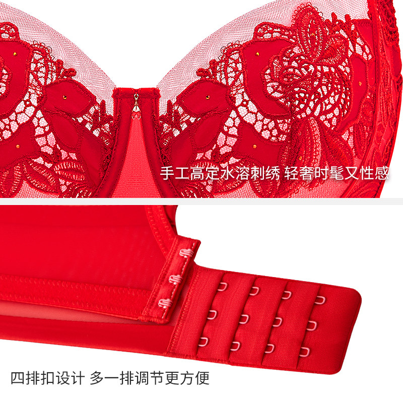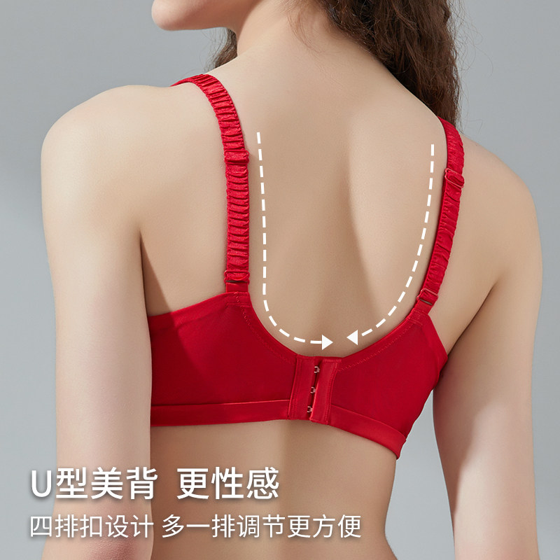 桑扶兰红色内衣女大胸显小2025夏本命年结婚胸罩薄文胸蕾丝性感