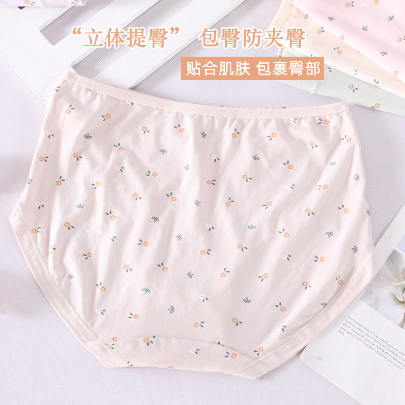 大码高腰女内裤高弹莫代尔胖mm加肥加大少女包臀三角短裤小清新风