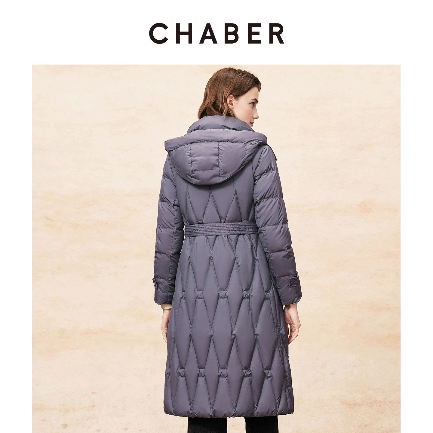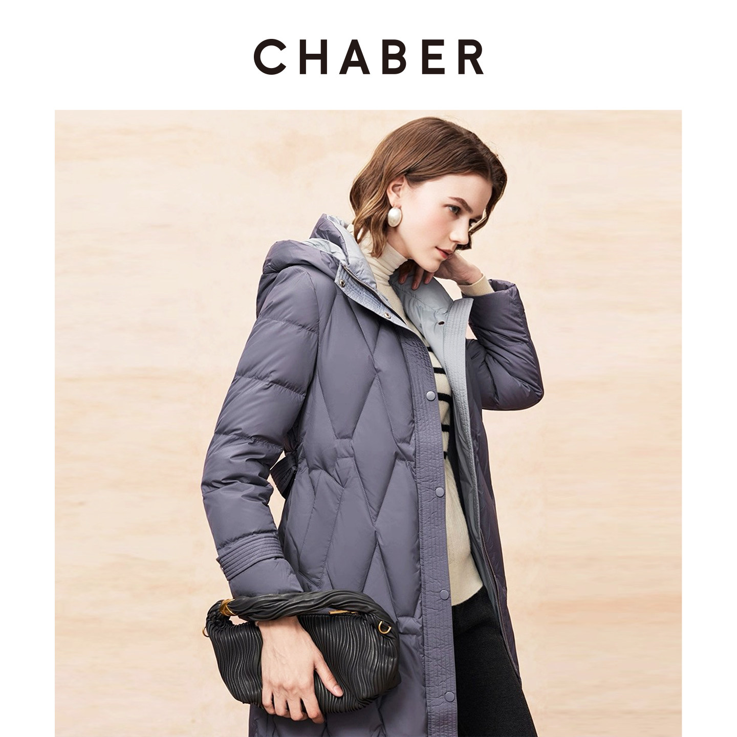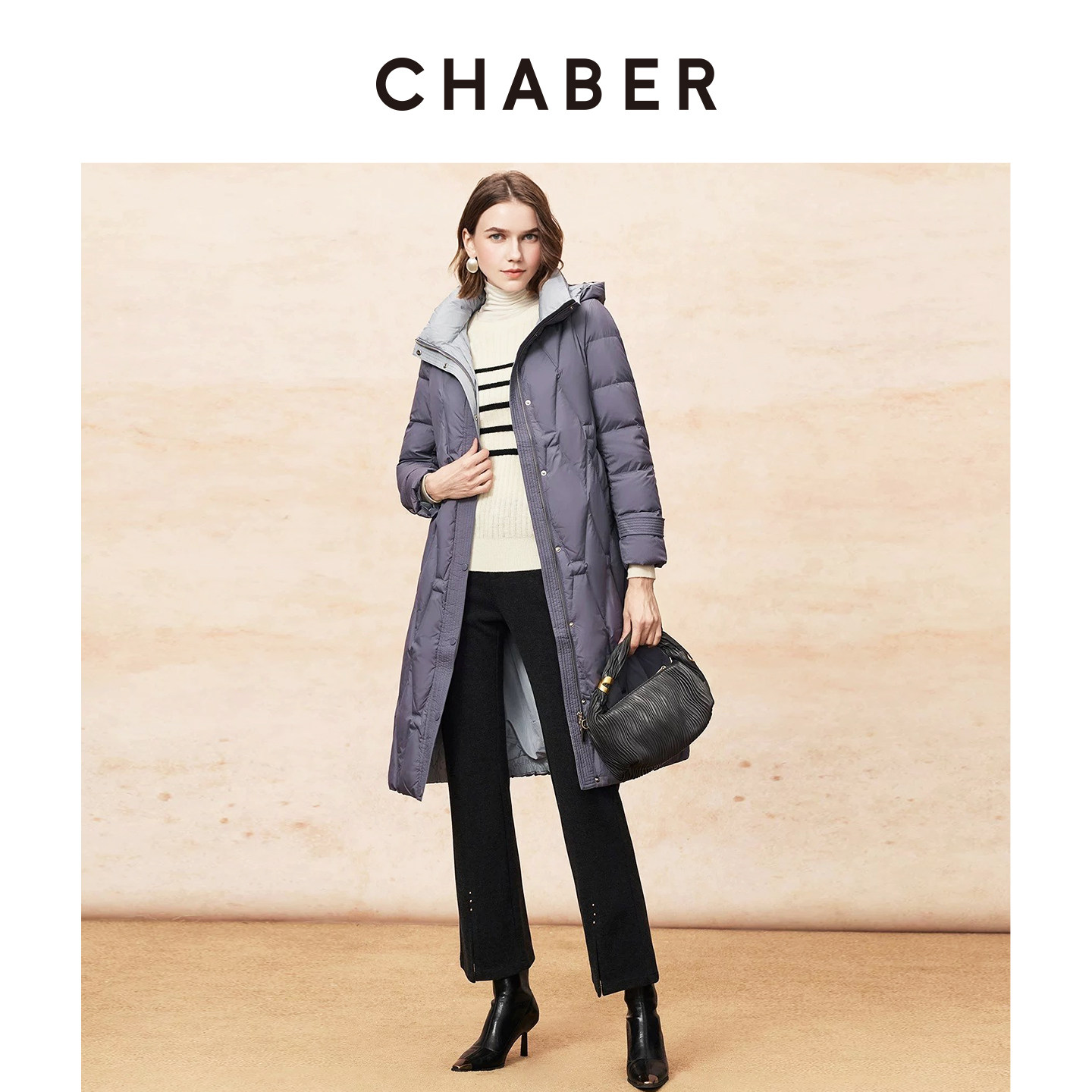 CHABER巧帛冬季新款连帽系带收腰羽绒服鸭绒保暖显瘦女中长款外套