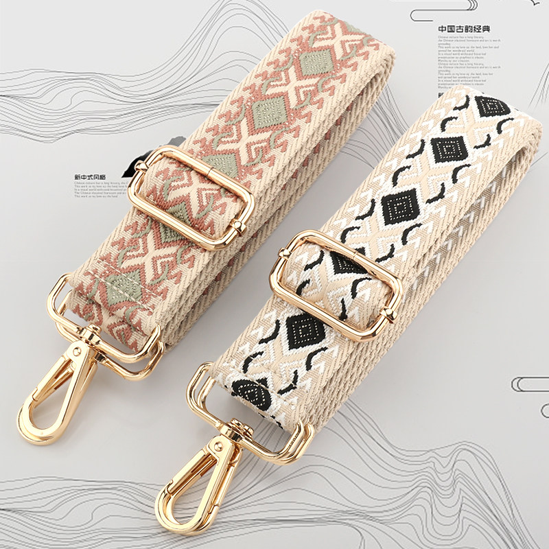 菱格纹宽包带配件斜挎背包替换带子潮尼龙帆布刺绣包背带女可调节