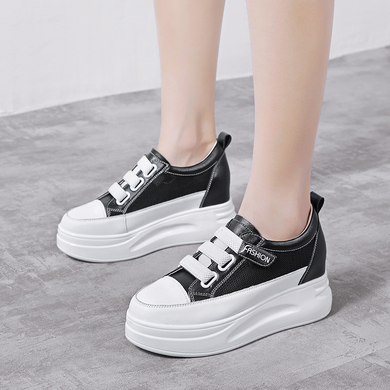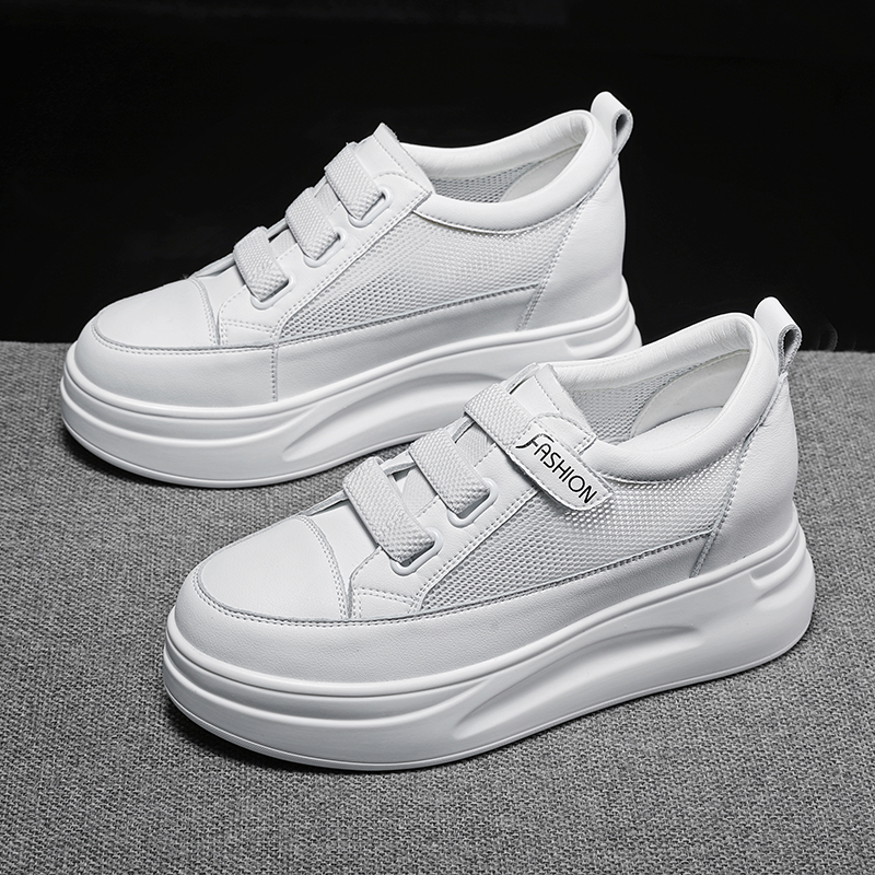真皮内增高小白鞋女2025新款夏季魔术贴百搭厚底33码34网面鞋