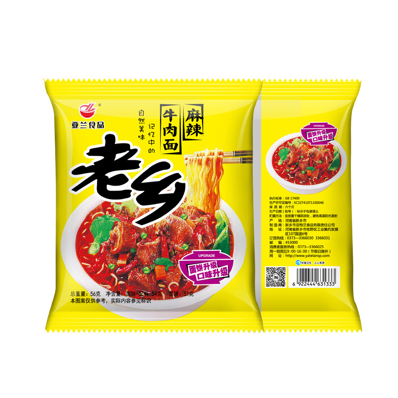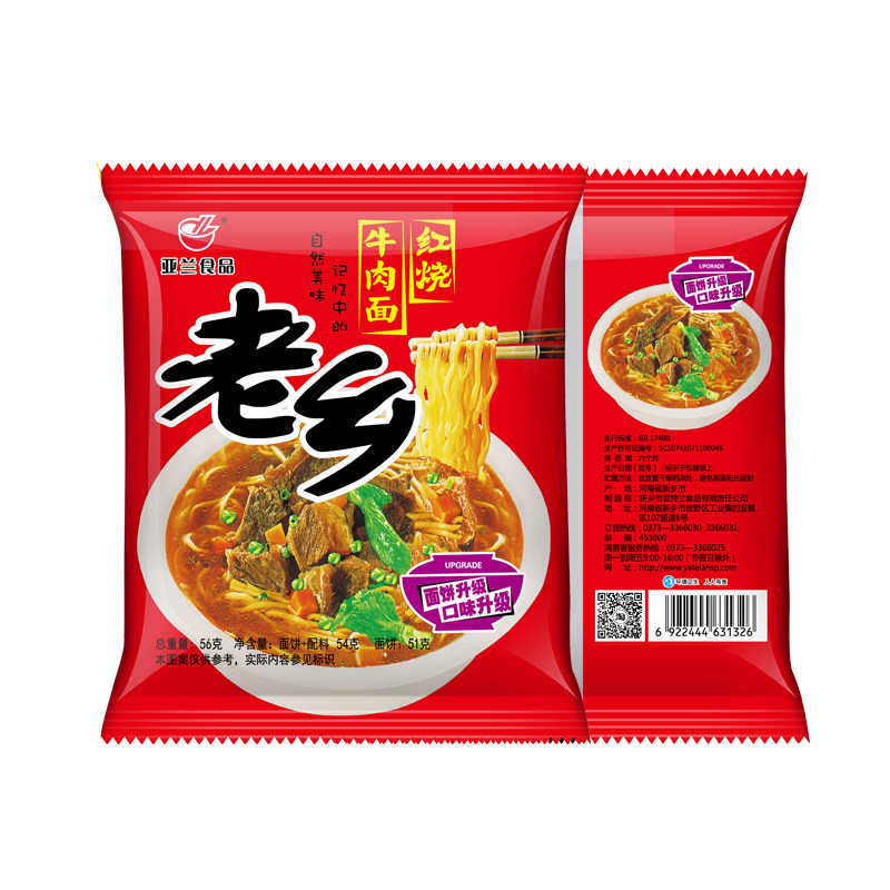 亚兰老乡方便面冲泡麻辣红烧牛肉面56克30包整箱干脆面休闲零食
