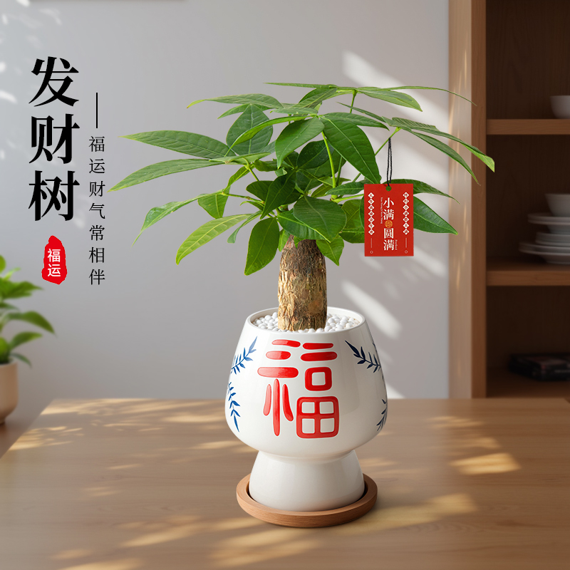 发财树小盆栽室内招财植物摆件中式禅意客厅办公室桌面盆景绿植