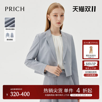 【零染】PRICH时尚肌理感干练短款西装套装春秋新款修身外套女