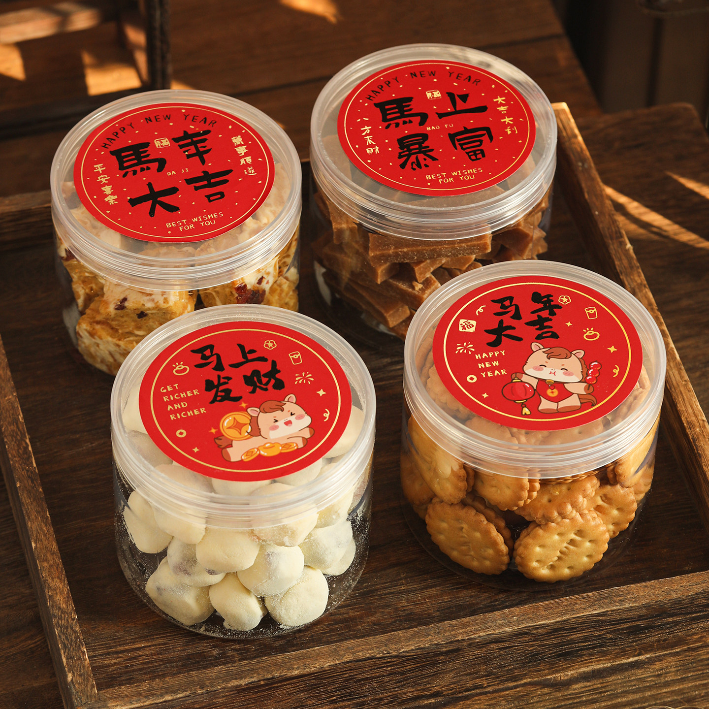 圆形饼干罐新年糖果罐子密封罐雪花酥牛轧糖塑料瓶透明曲奇饼干罐
