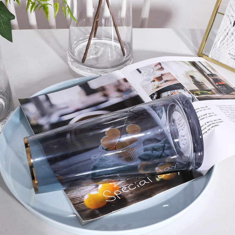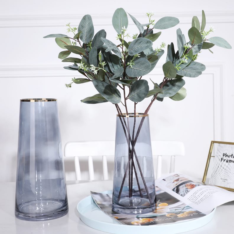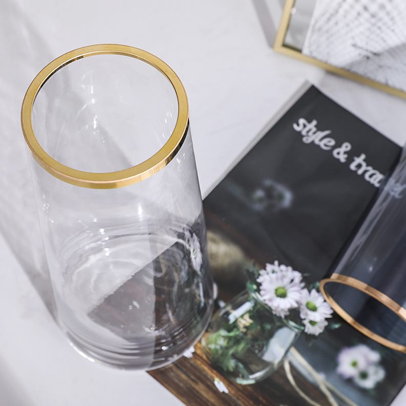 简约玻璃花瓶金大号北欧轻奢插花瓶 客厅摆件透明边富贵竹水培