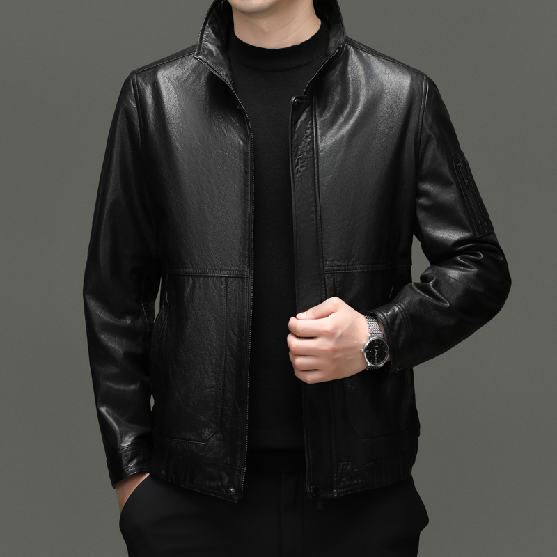 复古宽松短款头层牛皮衣外套男士上衣春秋季真皮翻领机车休闲夹克