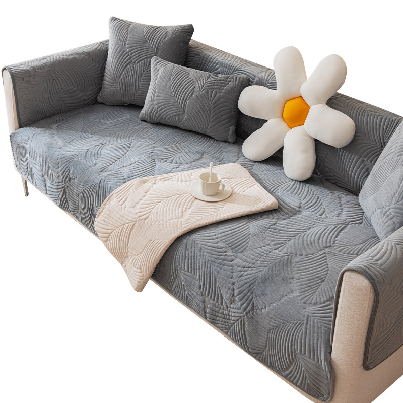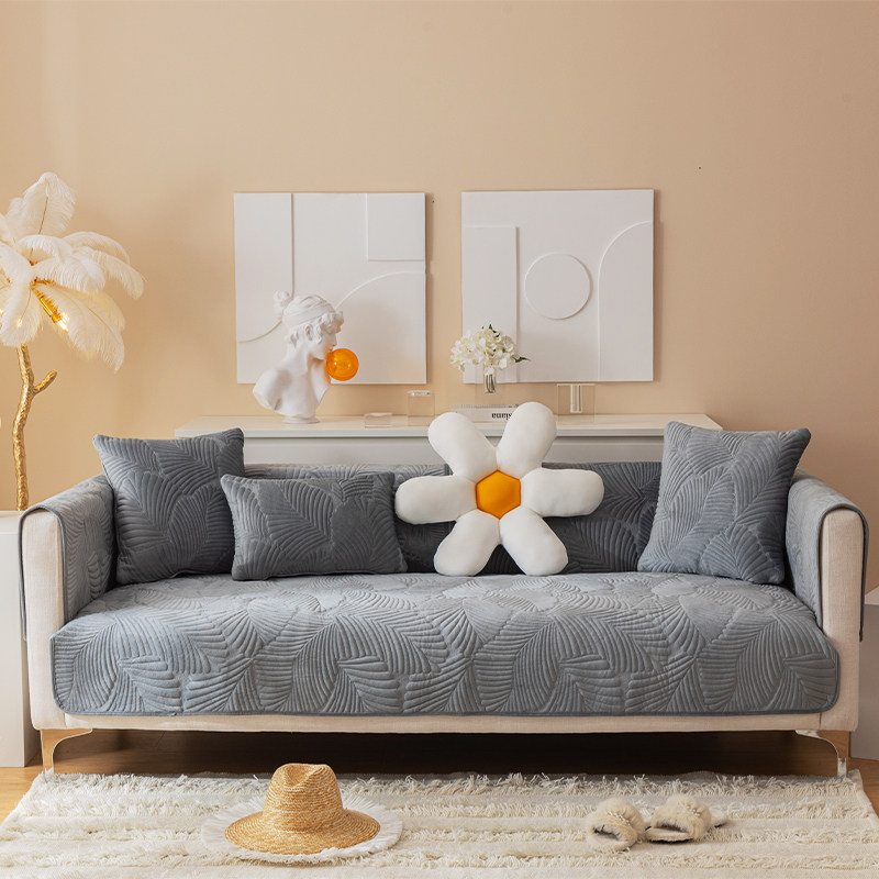 北欧简约纯色灰色短绒沙发垫布艺防滑坐垫冬季通用现代沙发套罩巾