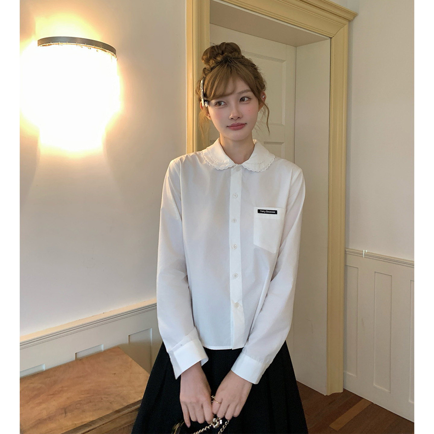东京岁时记JK原创正版长袖衬衫制服女秋衬衣学院风娃娃领白色上衣