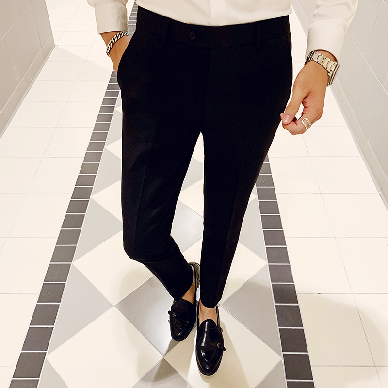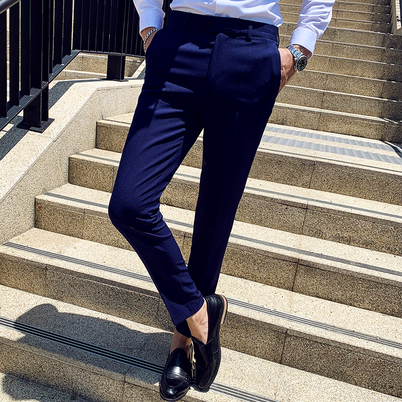 夏季薄款韩版修身休闲裤白色小脚裤时尚弹力紧身休闲裤男士长裤潮