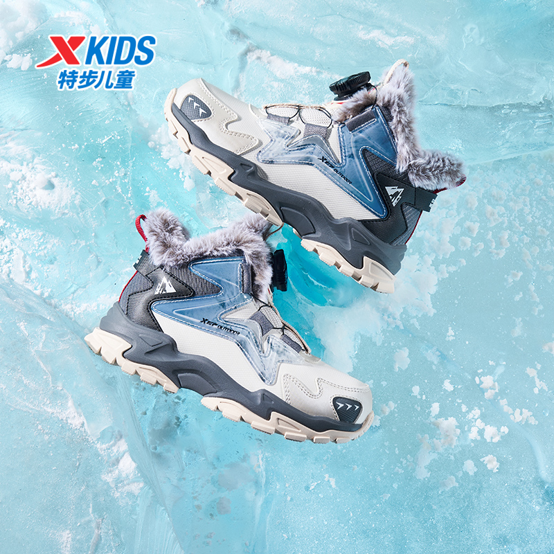 特步童鞋冬季款男童小童旋转扣运动休闲加绒内里防滑耐磨百搭棉鞋