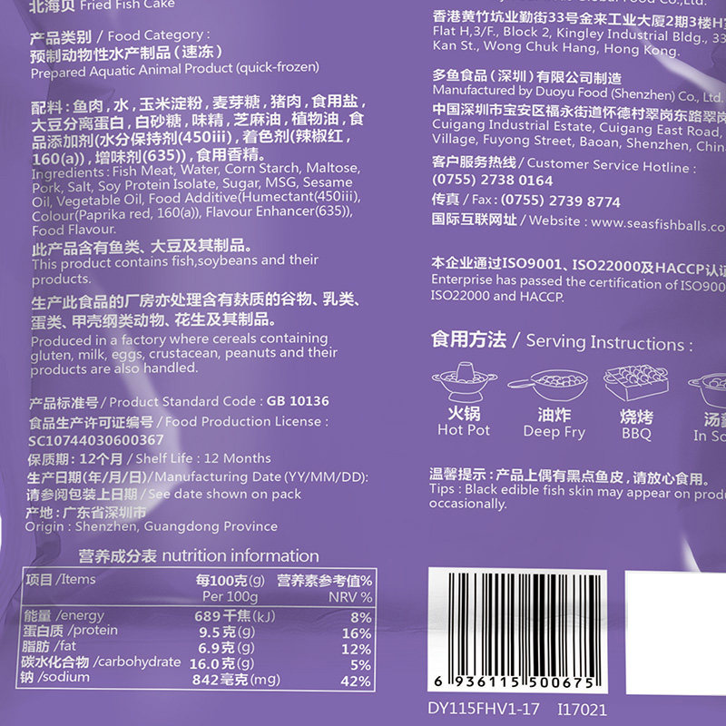 四海鱼蛋北海贝肉丸子500g关东煮