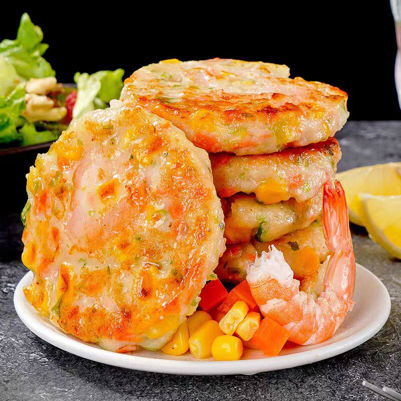 虾仁饼时蔬鲜虾饼果蔬虾仁空气炸锅食材儿童营养早餐低脂虾排新鲜