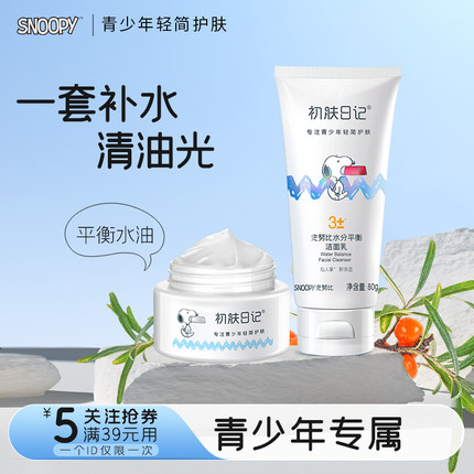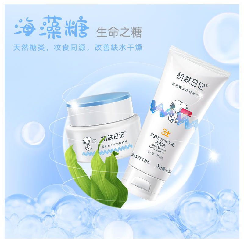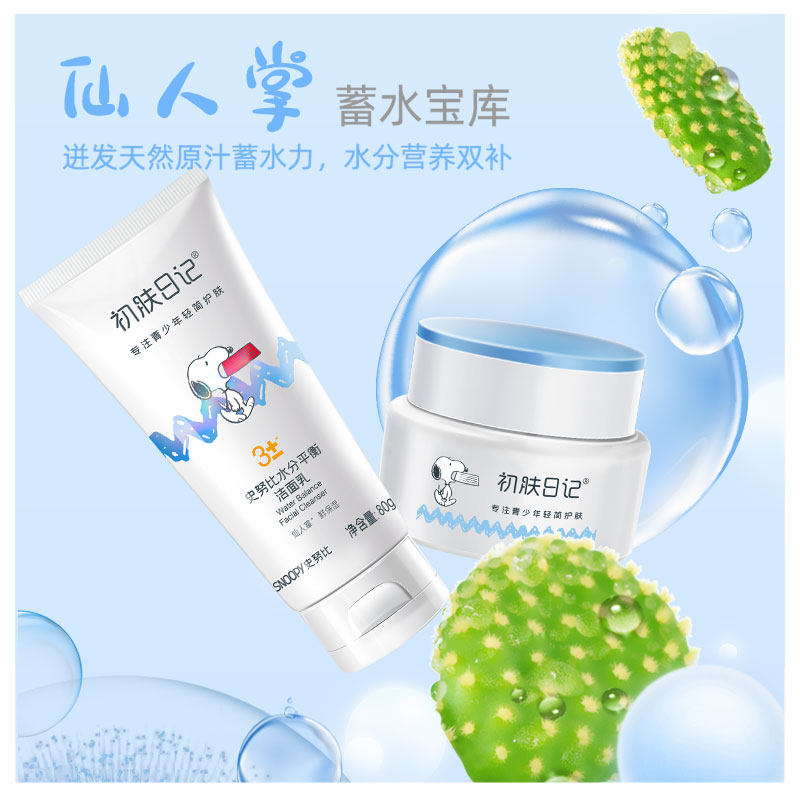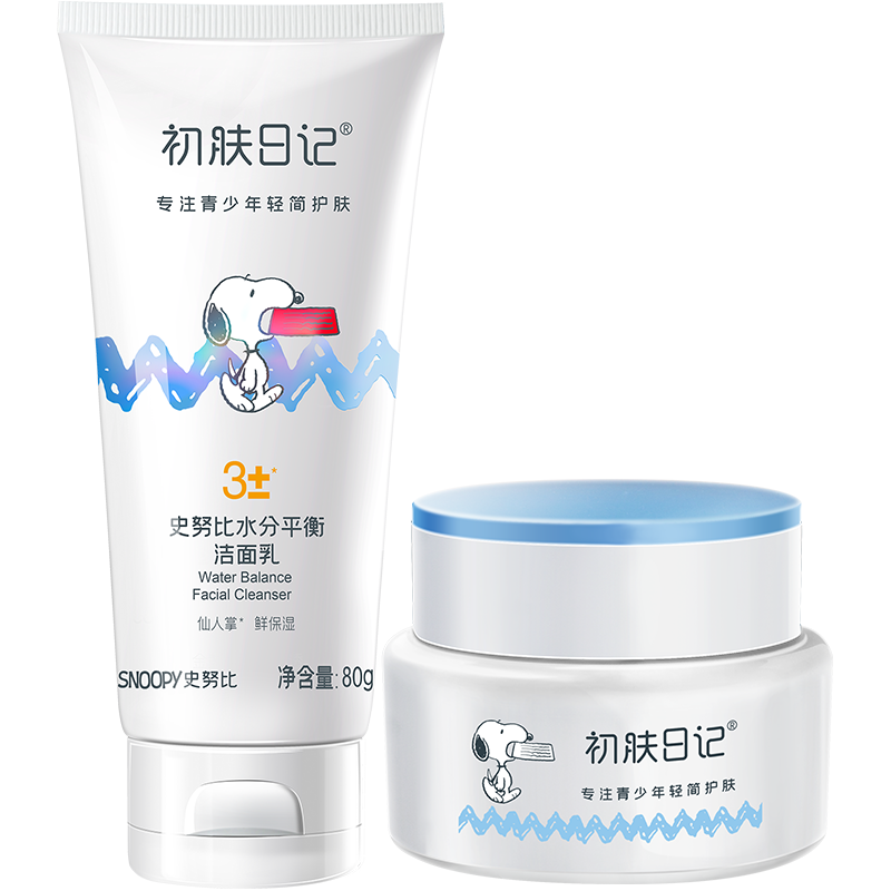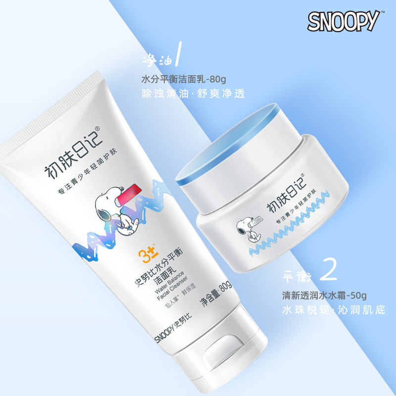 史努比高保湿面霜水水霜平衡洁面乳油皮男女学生党夏季护肤品套装