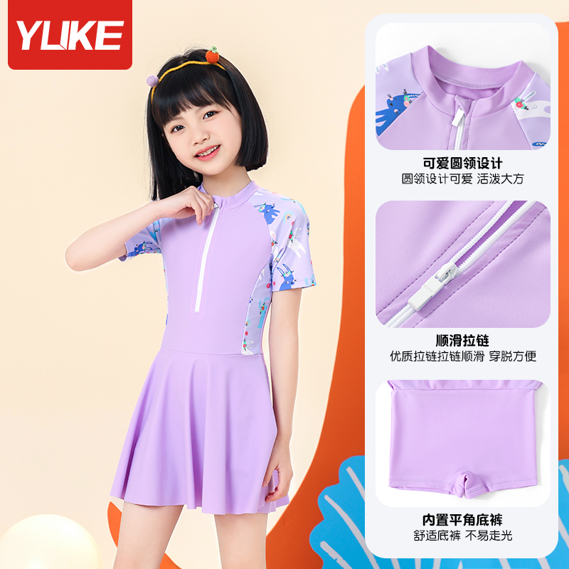 儿童泳衣女童中大童公主宝宝游泳女孩连体初中生保守2025夏季新款