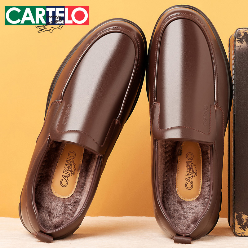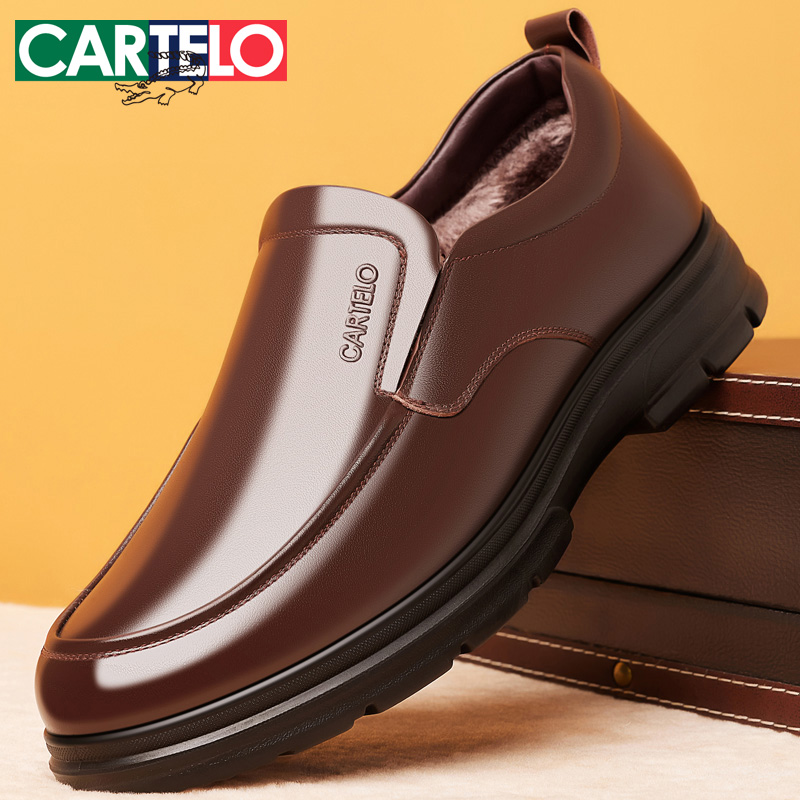 皮鞋男真皮商务休闲鞋冬季加绒保暖男士棉鞋防滑软底中老年爸爸鞋