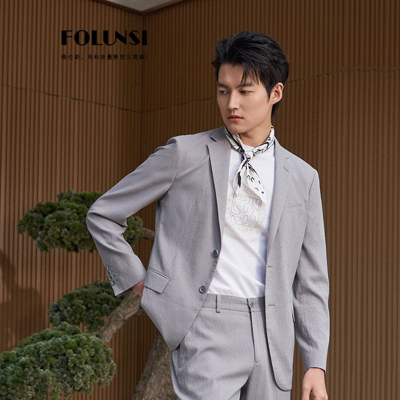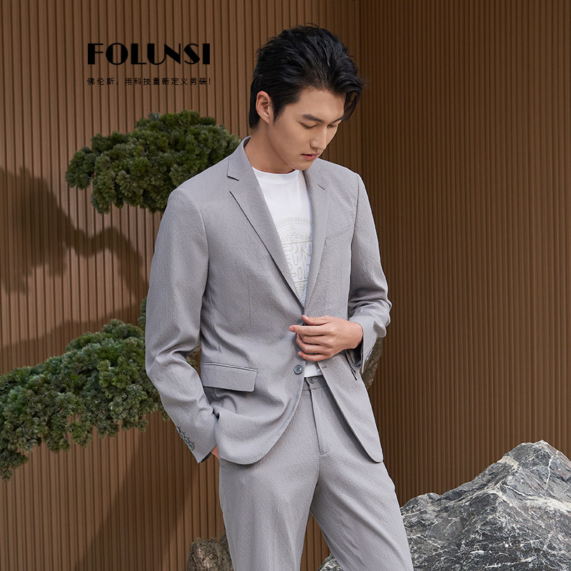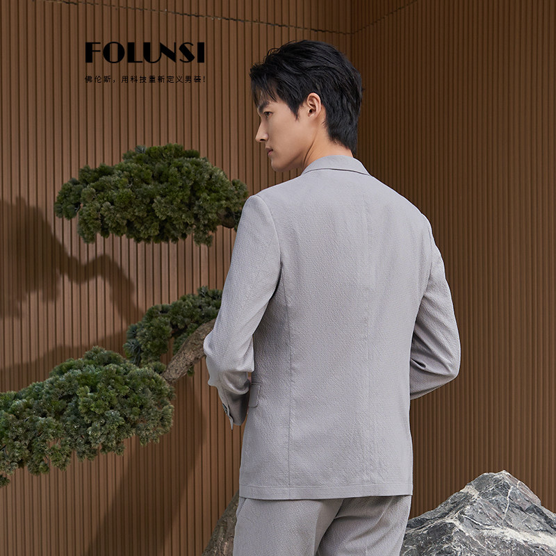 佛伦斯FOLUNSI男装单西外套男春秋款休闲西装潮卡其男士上衣西服