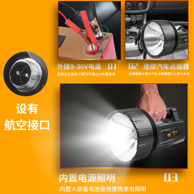 俱竟阳手电筒户外强光远射氙气钓鱼巡逻超亮手提充电疝气探照灯