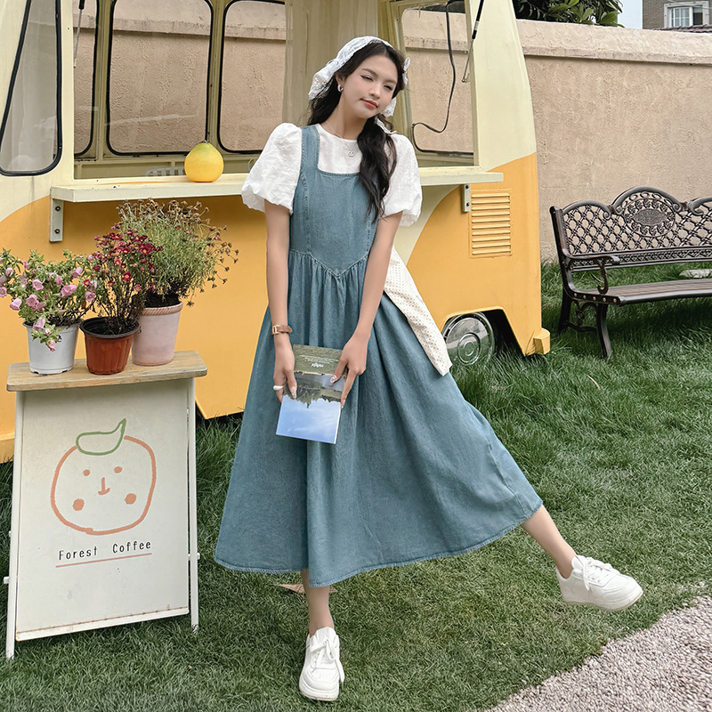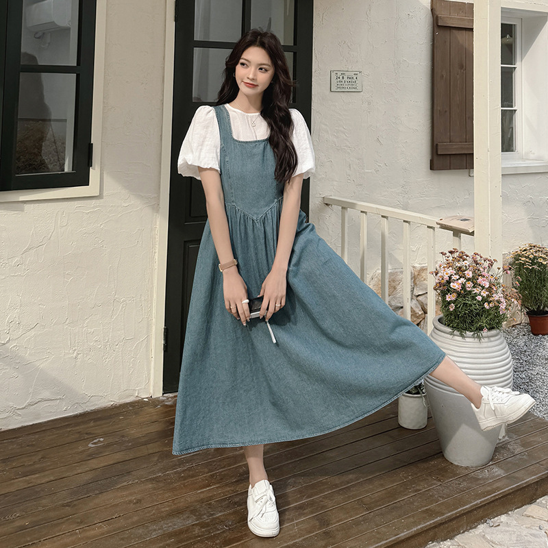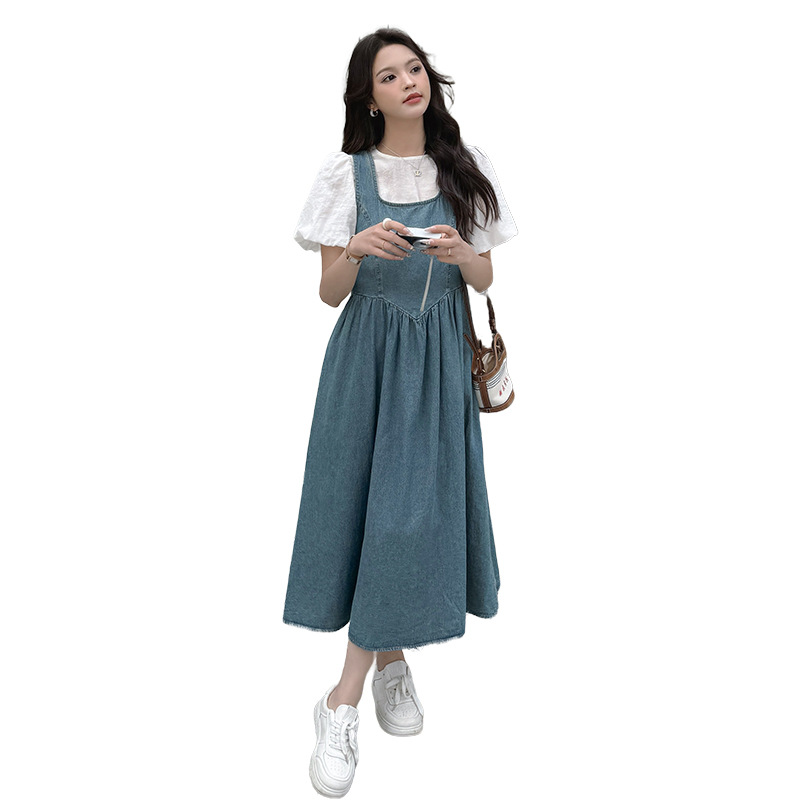 官网女装夏易菲复古牛仔背带裙套装女2025夏季新款法式温柔风气质