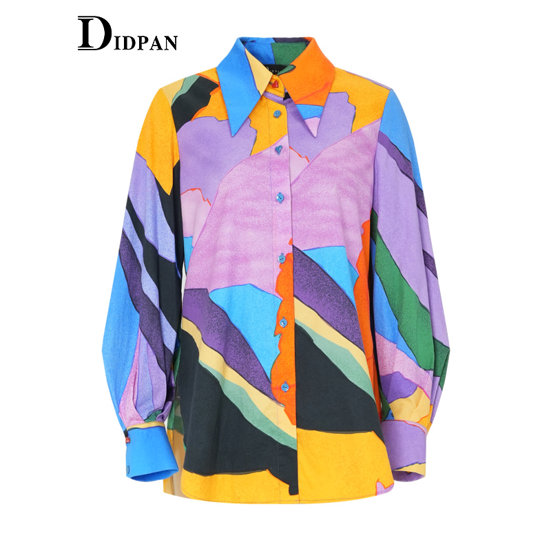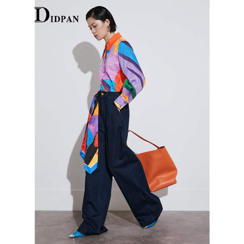 IDPAN女装风商场同款设计感艺术印花通勤长袖衬衫气质上衣女