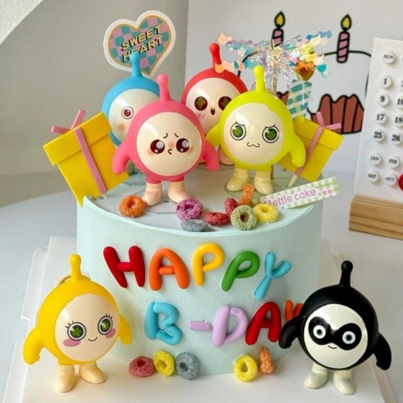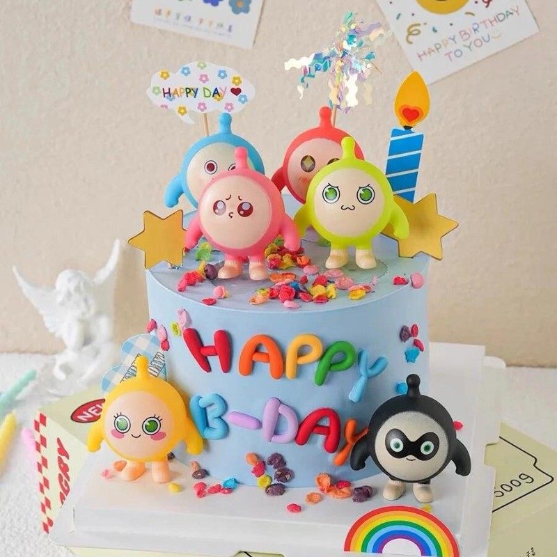 网红蛋仔蛋糕装饰软胶小熊生日快乐字母插件炫彩雨丝甜品装扮配件