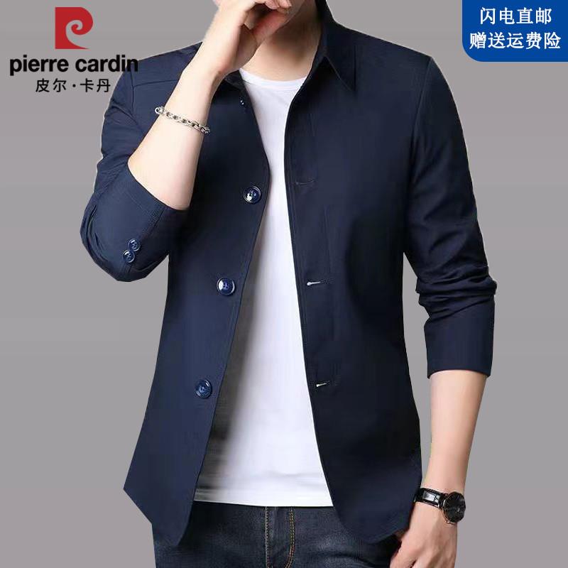 皮尔卡丹夹克衫男士风衣短款春秋季休闲西装上衣薄款修身外套翻领