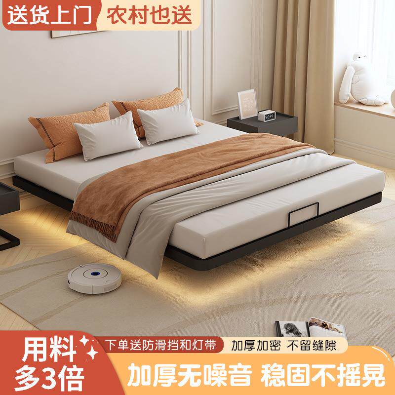 网红简约悬浮床1.2米1.8米轻奢无床头实木床架双人铁床公寓铁床架