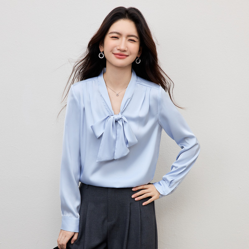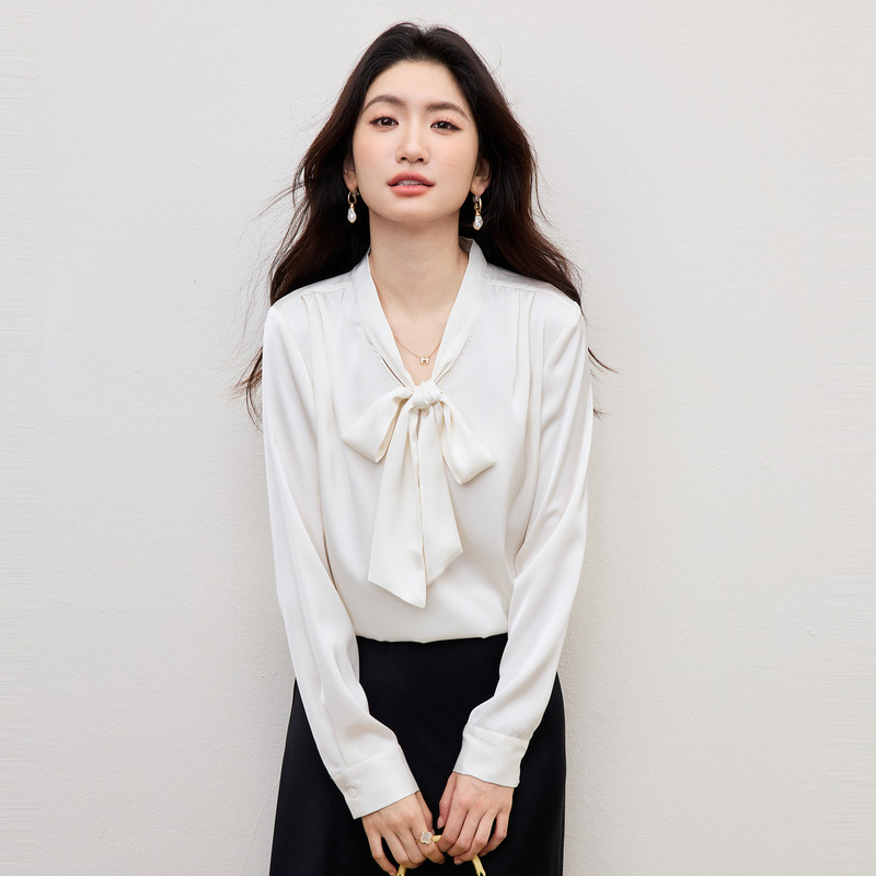 白色缎面衬衫女士2026早春通勤职场轻熟风职业面试衬衣法式上衣