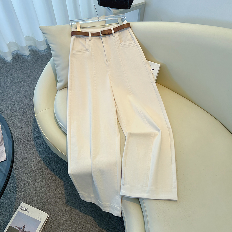 啄木鸟洗水棉高腰直筒牛仔裤女秋季新款宽松阔腿裤百搭休闲女裤