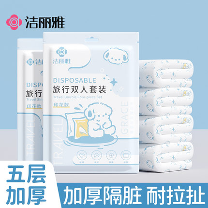 洁丽雅一次性床上四件套加厚隔脏