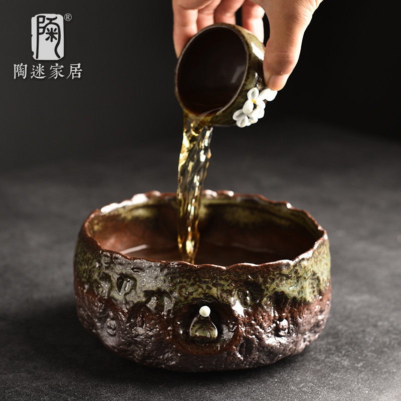 清水柴烧茶洗大号建水茶渣缸复古陶瓷创意仿敦煌壁画大容量水盂