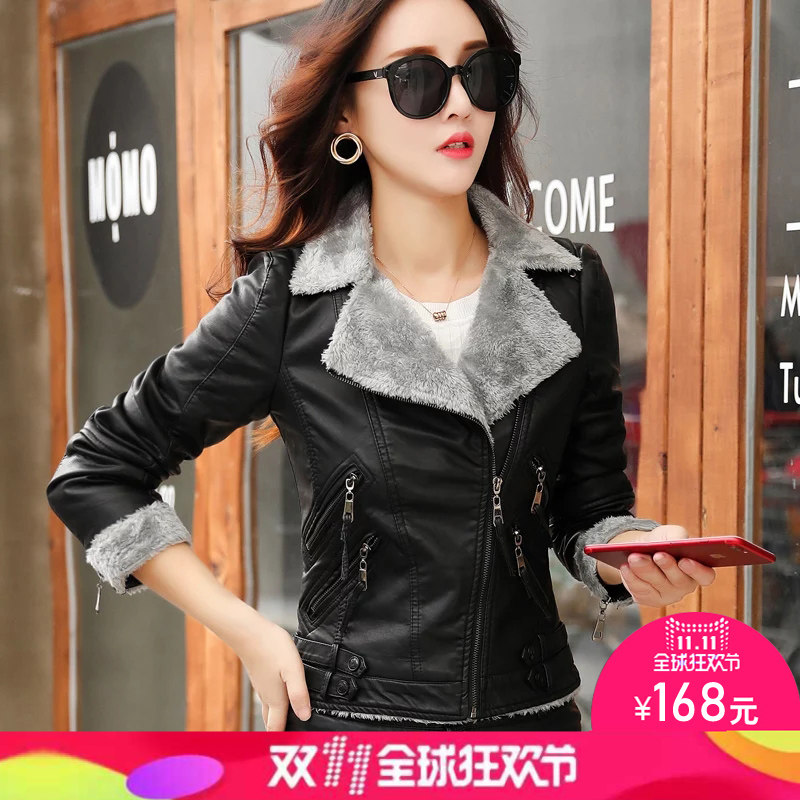 画艺比2025秋冬新款修身短款加绒皮衣女皮外套机车皮夹克保暖显瘦